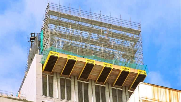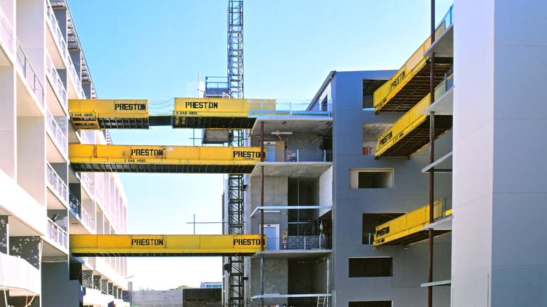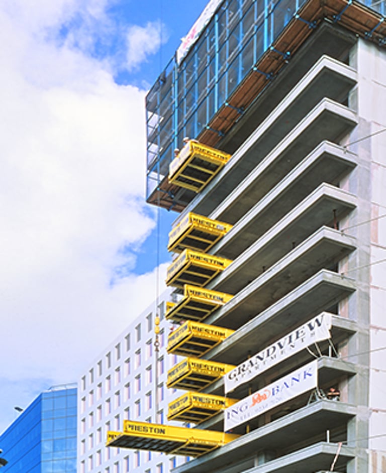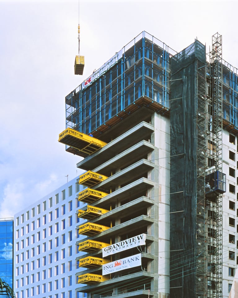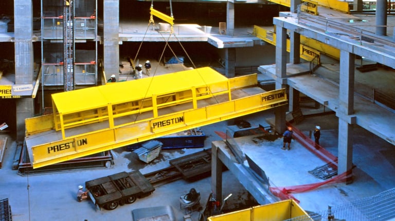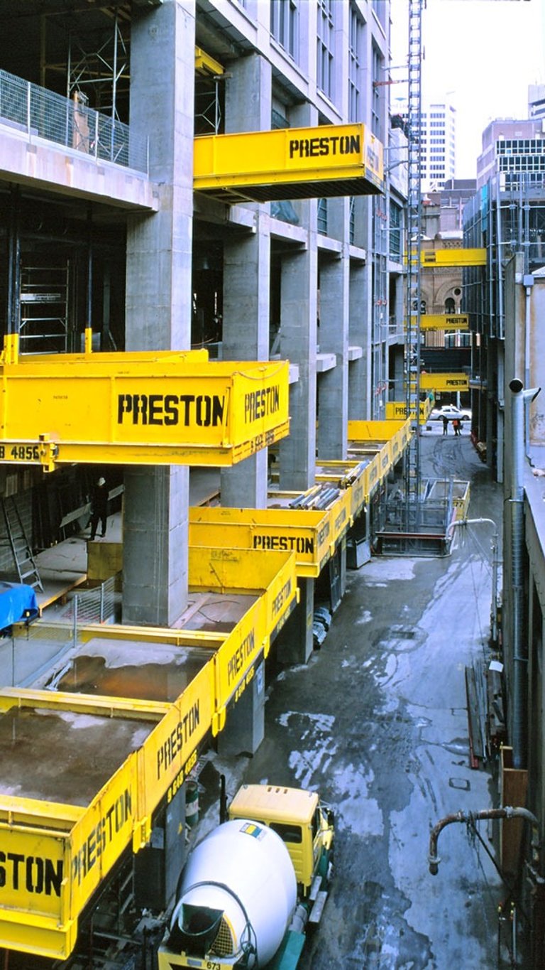 A showcase of the original Preston SuperDeck in action — from early prototypes designed by John Preston to the modern platforms now used on high-rise projects across the world. These images highlight SuperDeck’s evolution, its rugged engineering, and the role it continues to play in shaping safer, faster construction sites everywhere.